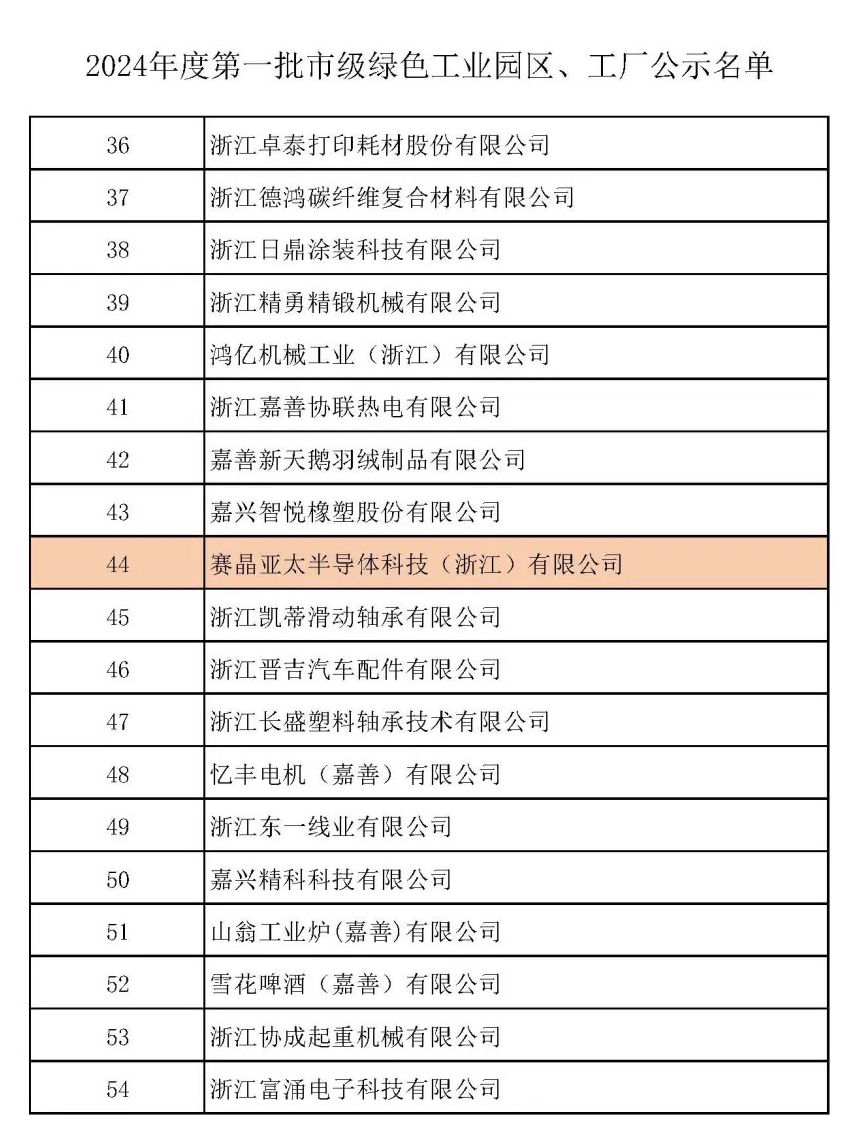 浙江省嘉兴市经济和信息化局日前公布了《2024年度第一批市级绿色工》的公示名单,多多28子公司”赛晶半导体公司“荣誉上榜,获评“绿色工厂”称号。这是对赛晶坚持践行“以科技创新,推动绿色能源发展”的认可与肯定,更是全方位彰显了赛晶的“绿色智造实力”。