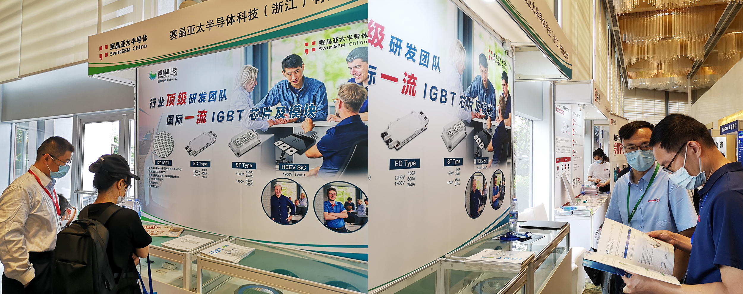 研讨会同期展览,赛晶展出i20 IGBT芯片、d20 FRD芯片、ED封装模块、ST封装模块以及EV封装模块样品,引发与会技术专家们广泛关注,现场火爆程度超乎预期。许多与会专业人士纷纷到赛晶展位参观和咨询,与现场技术、销售人员进行了深入的交流,并对赛晶将推出的新品抱有极大期许。