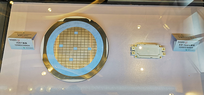 论坛同期的展览展示上,赛晶展出了“1200V/600A”ED-Type模块和“1200V/200A”IGBT晶圆的样品。