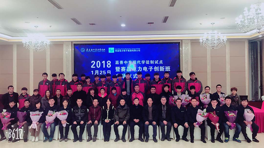 2018年1月25日,赛晶电力电子创新班启动仪式在浙江嘉善举行。启动仪式由嘉善中专副校长蒋怀长主持,赛晶集团行政人事副总裁任洁致词、嘉善中专校长冯军致词,嘉善县教育局、人社局、经信局等相关领导出席并发表了重要讲话。