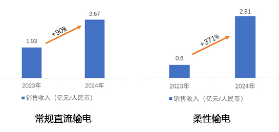 取得如此出色的成绩,主要源于自2023年起常规直流输电和柔性输电开启新一轮的投资建设,并于2024年开始批量交付。在常规直流领域,金上-湖北、哈密-重庆、宁夏-湖南三大“西电东送”工程相继高质量交付;在柔直输电领域,交付了德国BorWin6、阳江青州、华能玉环等多个海上风电柔性输电工程,以及四川、西藏SVG构网项目。此外,沙特中南柔直、甘肃-浙江特高压柔直陆续启动,以及十余个直流输电工程正有序推进前期工作,将为本集团业务规模的长期、快速提升带来极佳的助力。