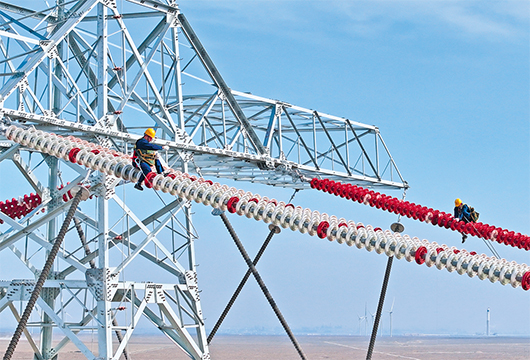 哈密—重庆±800千伏特高压直流输电工程建设现场。
