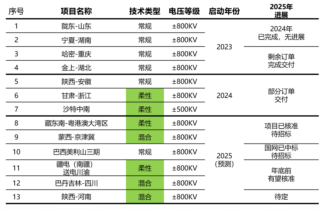 海风并网、改造更新、电网互联、柔性交流,多种需求百花齐放。各种创新技术和应用场景不断涌现,2025年上半年分别有扬州-镇江直流输电二期、巴西伊泰普水电站直流送出、智利/秘鲁DPFC、中广核嵊泗海上风电送出项目等订单正在交付中,另外今年还有上海电气山东半岛海风、华能山东海上风电等诸多项目待启动。