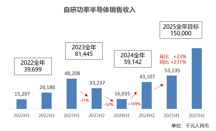 本集团的自研功率半导体业务,继续保持良好的发展形势。2025年上半年销售收入达53,135千元人民币,同比增长231%,环比增长23%。得益于客户群体及订单规模增长,1700V新产品销量增长。2025全年,自研功率半导体全年目标销售收入1.5亿元人民币。